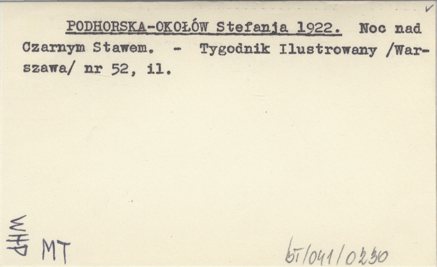 PODHORSKA-OKOŁÓW Stefania 1922 Noc nad Czarnym Stawem.
