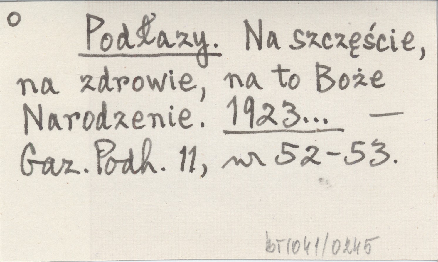 Podłazy. Na szczęście, na zdrowie, na to Boże Narodzenie. 1923...