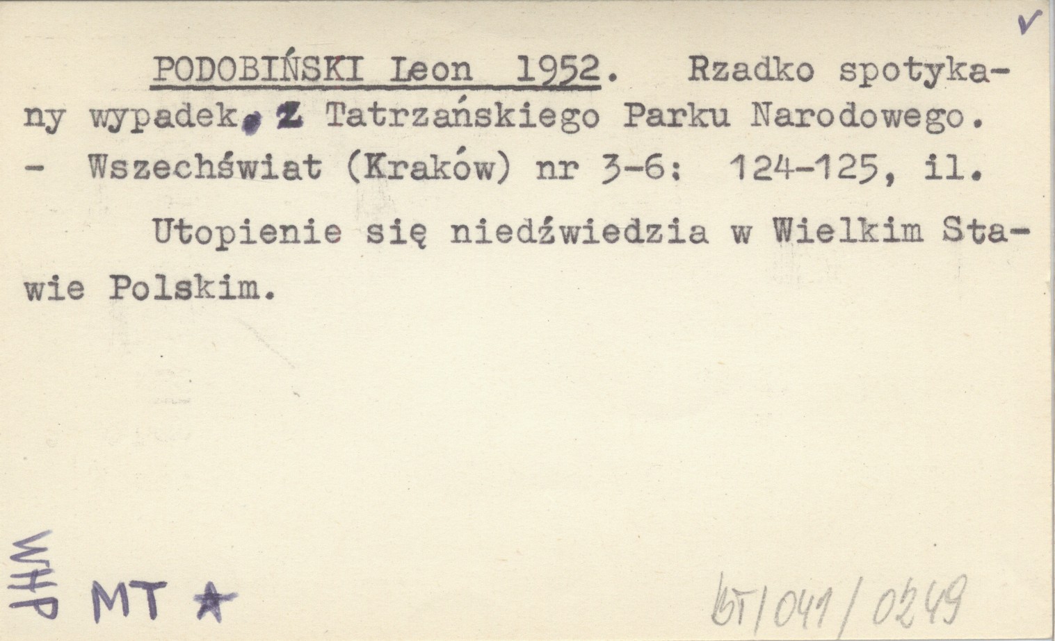 PODOBIŃSKI Leon 1952 Rzadko spotykany wypadek z Tatrzańskiego Parku Narodowego.