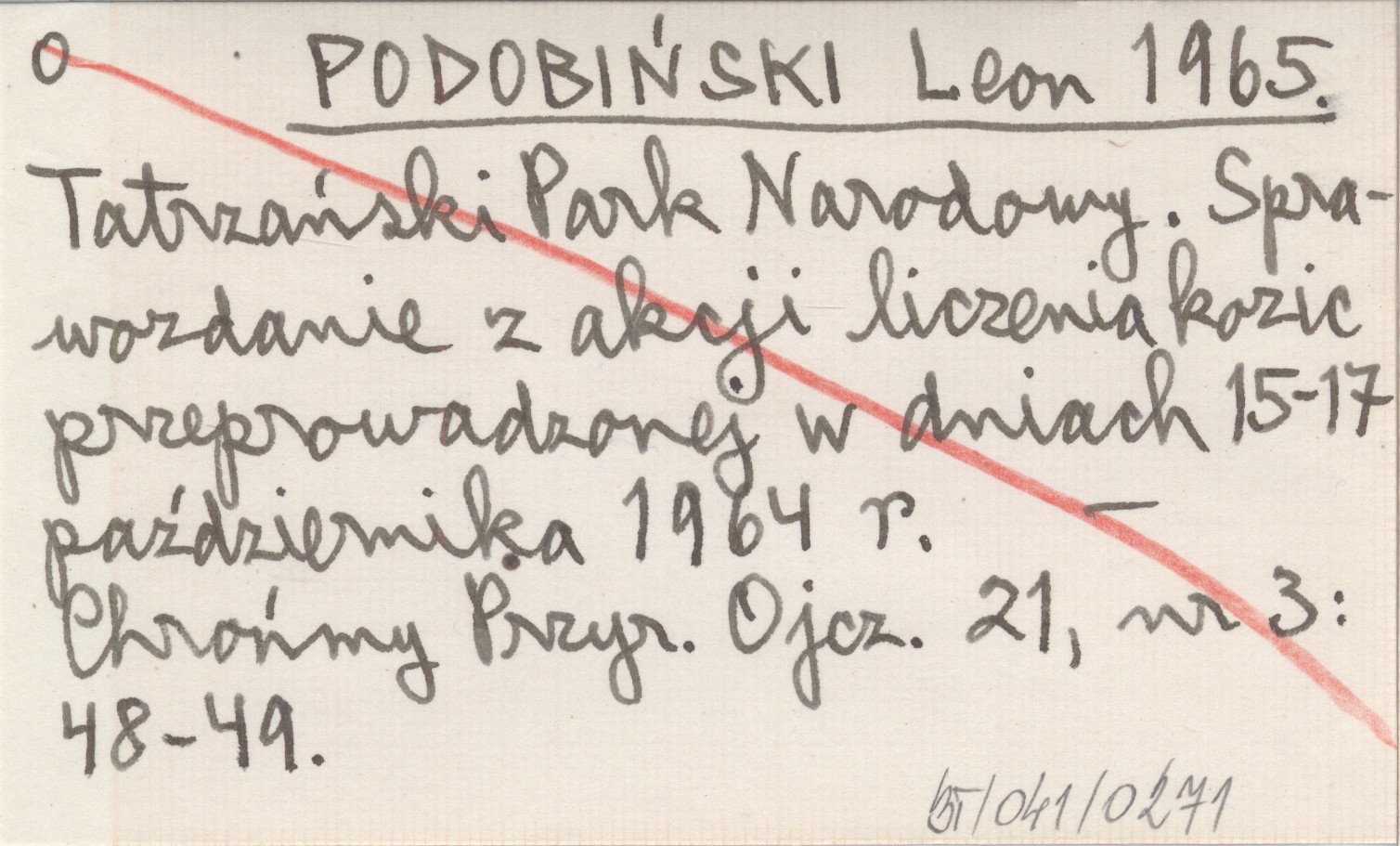 PODOBIŃSKI Leon 1965 Tatrzański Park Narodowy. Sprawozdanie z akcji liczenia kozic przeprowadzonej w dniach 15-17 października 1964 r.