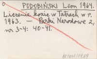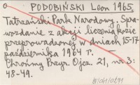 PODOBIŃSKI Leon 1965 Tatrzański Park Narodowy. Sprawozdanie z akcji liczenia kozic przeprowadzonej w dniach 15-17 października 1964 r.