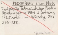 PODOBIŃSKI Leon 1965 Zwierzęta Tatrzańskiego Parku Narodowego w 1964 i wiosną 1965 roku.