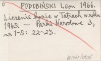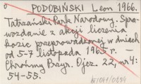 PODOBIŃSKI Leon 1966 Tatrzański Park Narodowy. Sprawozdanie z akcji liczenia kozic przeprowadzonej w dniach od 5-7 listopada 1965 r.
