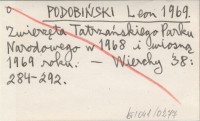 PODOBIŃSKI Leon 1969 Zwierzęta Tatrzańskiego Parku Narodowego w 1968 i wiosną 1969 roku.