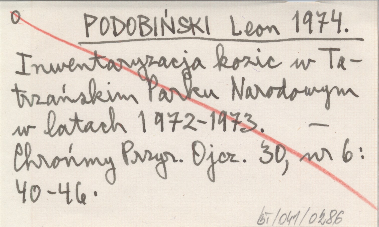 PODOBIŃSKI Leon 1974 Inwentaryzacja kozic w Tatrzańskim Parku Narodowym w latach 1972-1973.
