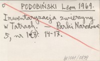PODOBIŃSKI Leon 1969 Inwentaryzacja zwierzyny w Tatrach.