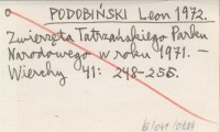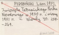 PODOBIŃSKI Leon 1975 O ochronę zwierząt Tatrzańskiego Parku Narodowego.