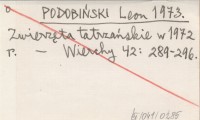 PODOBIŃSKI Leon 1973 Zwierzęta tatrzańskie w 1972 r.