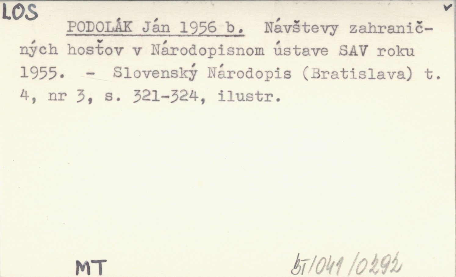 PODOLÁK Ján 1956 b Návątevy zahraničných hos»ov v Národopisnom ústave SAV roku 1955.