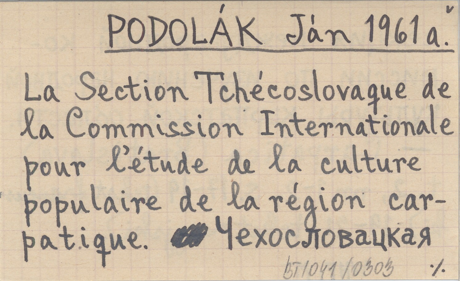 PODOLÁK Ján 1961 a La Section Tchécoslovaque de la Commission Internationale pour l'étude de la culture populaire de la région carpatique. Čechoslovackaja sekcija meždunarodnoj komissii po izučeniju oblasti.
