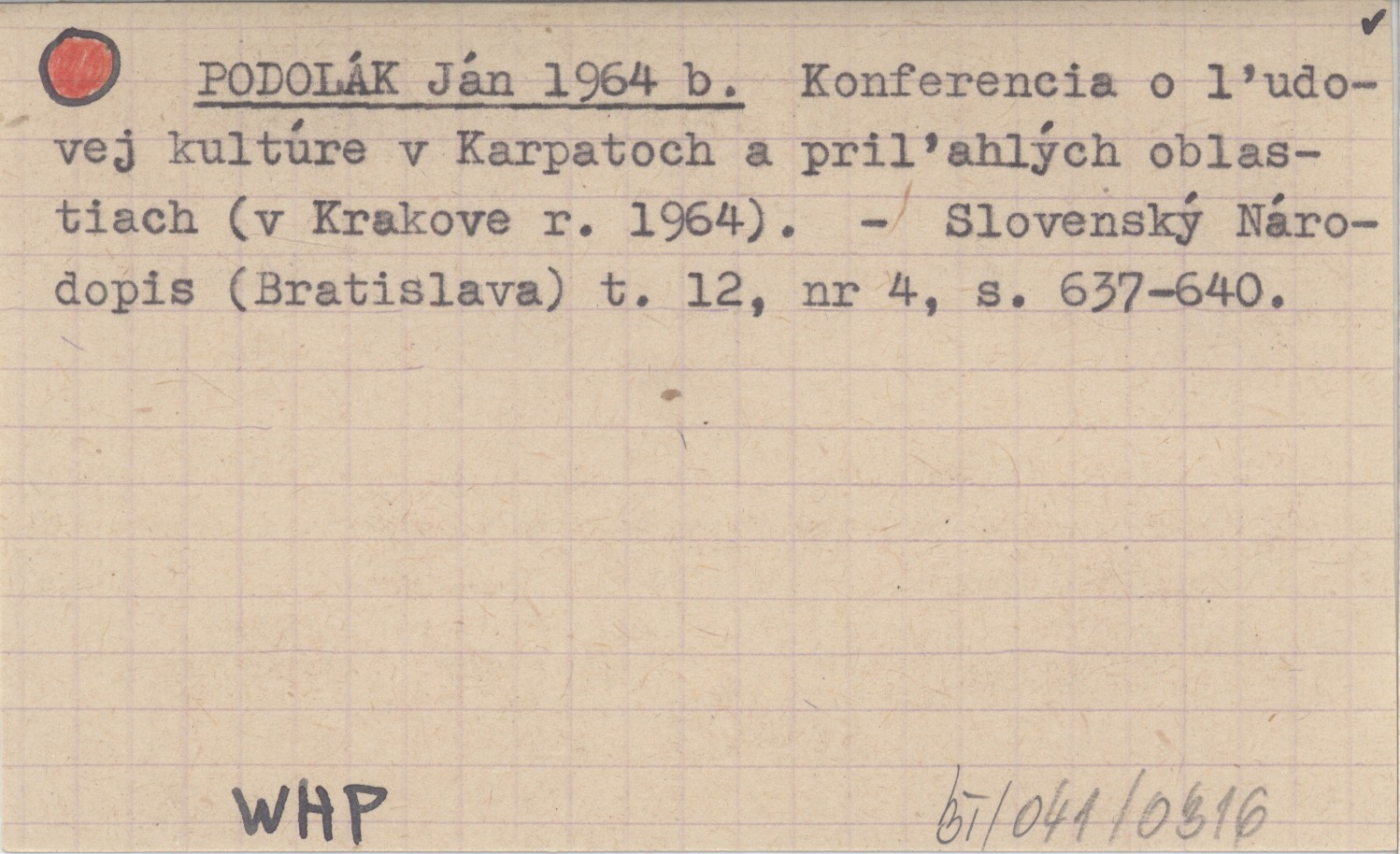 PODOLÁK Ján 1964 b Konferencia o ”udovej kultúre v Karpatoch a pri”ahlęch oblastiach (v Krakove r. 1964).