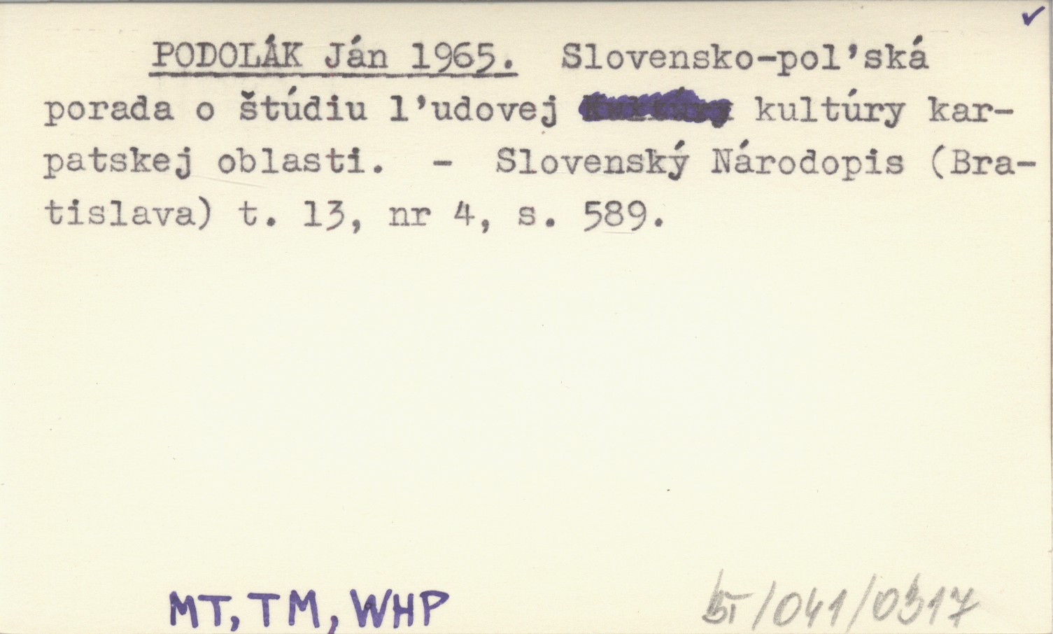 PODOLÁK Ján 1965 Slovensko-poµská porada o ątúdiu µudovej kultúry karpatskej oblasti.