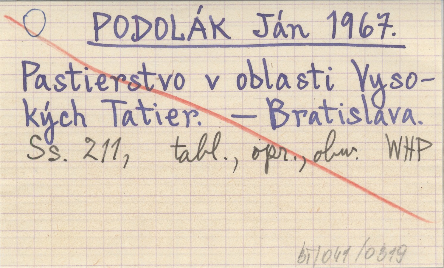 PODOLÁK Ján 1967 Pastierstvo v oblasti Vysokých Tatier.