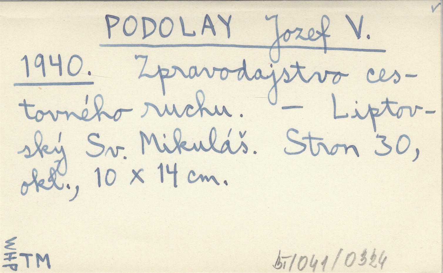 PODOLAY Jozef V. 1940 Zpravodajstvo cestovného ruchu.