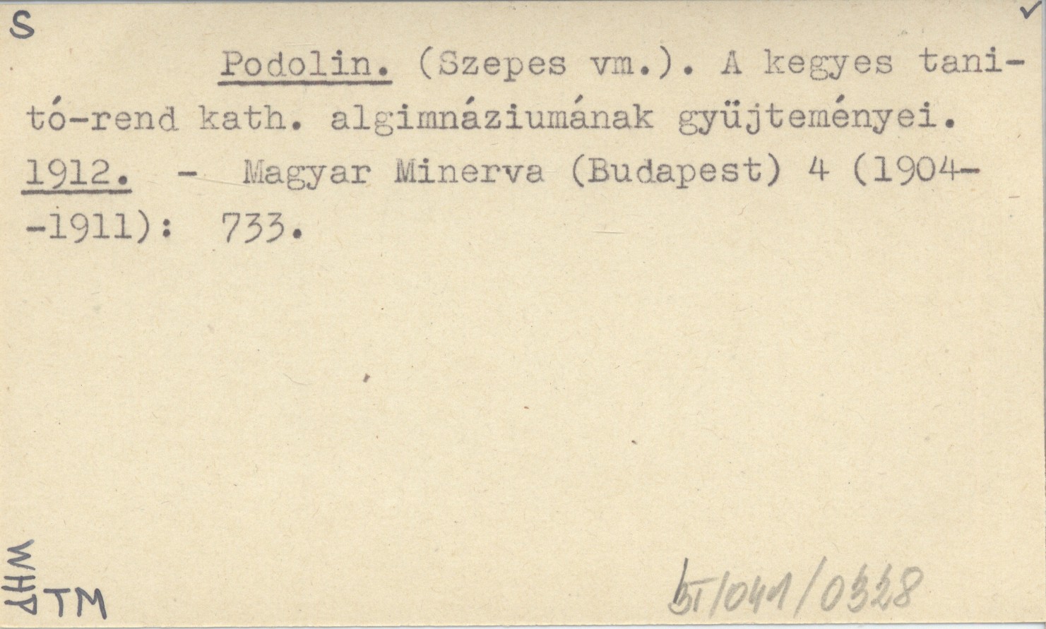Podolin. (Szepes vm.). A kegyestanitórend kath. algimnáziumának gyüjteményei. 1912