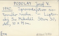 PODOLAY Jozef V. 1940 Zpravodajstvo cestovného ruchu.