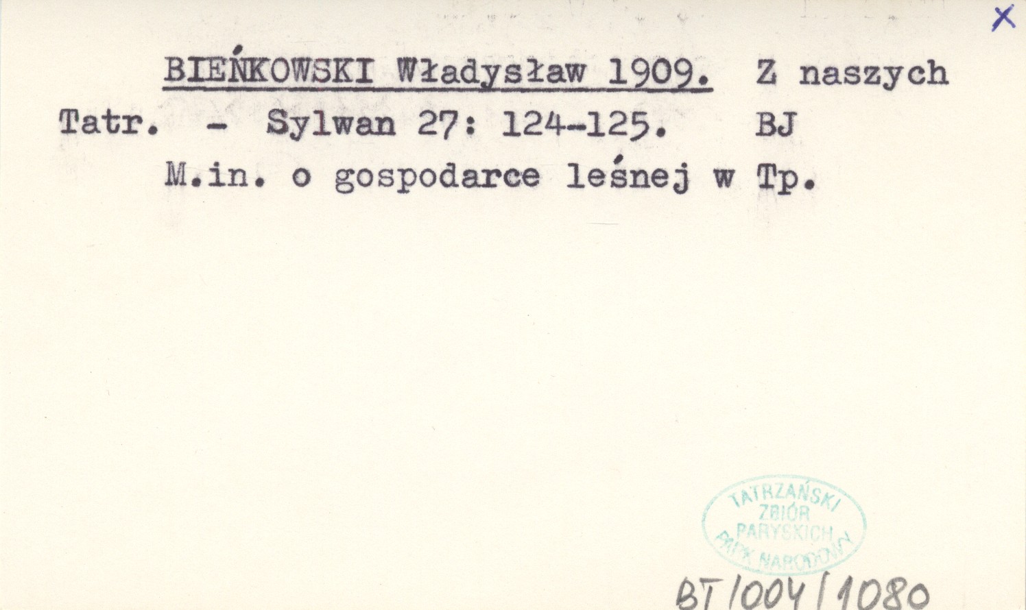 Sylwan, 27: 124-125. M.in. o gospodarce leśnej w Tp.