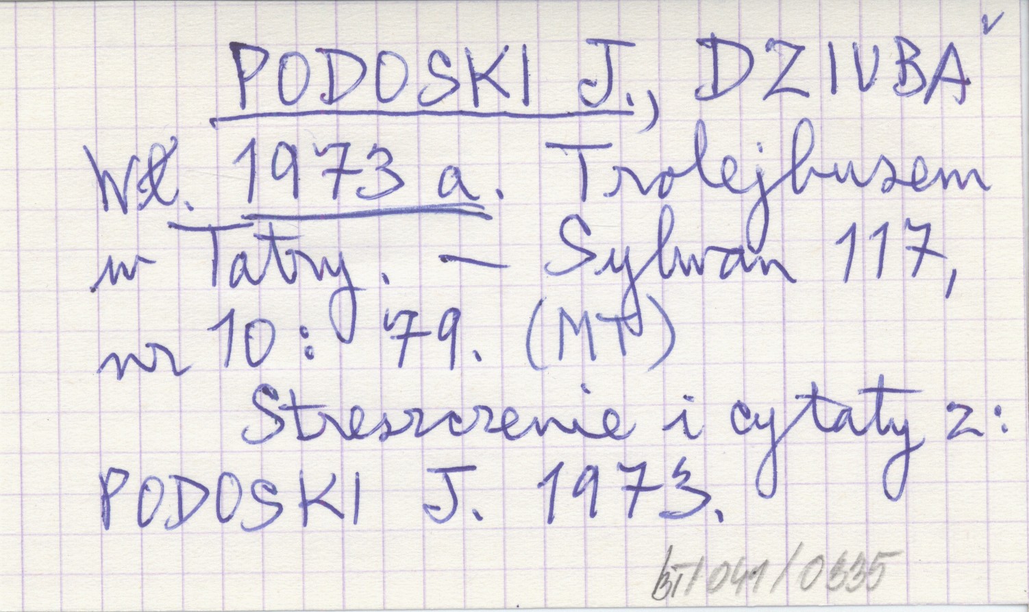 PODOSKI J. DZIUBA, Wł. ; 1973 a Trolejbusem w Tatry.