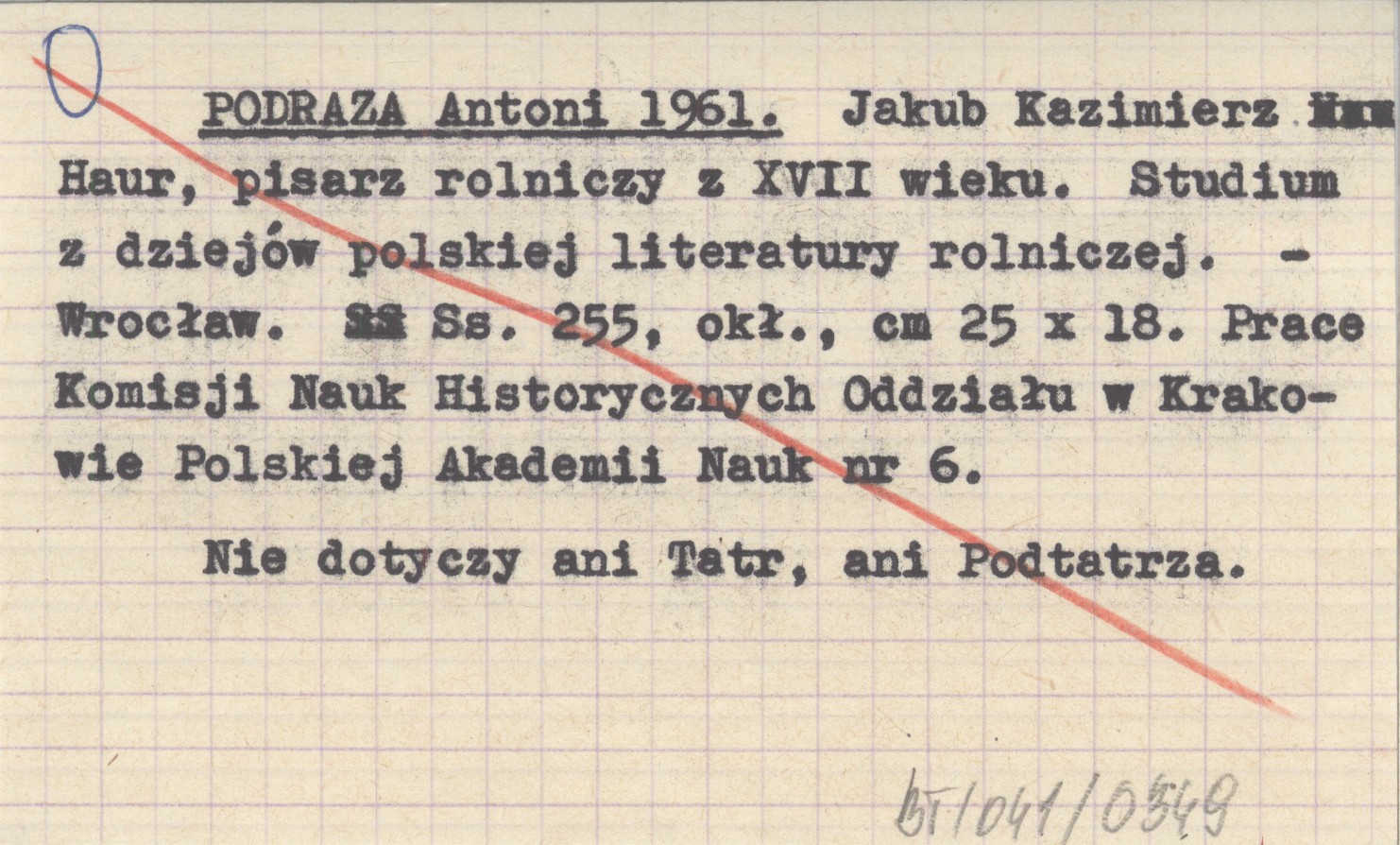 PODRAZA Antoni 1961 Jakub Kazimierz Haur, pisarz rolniczy z XVII wieku. Studium z dziejów polskiej literatury rolniczej.