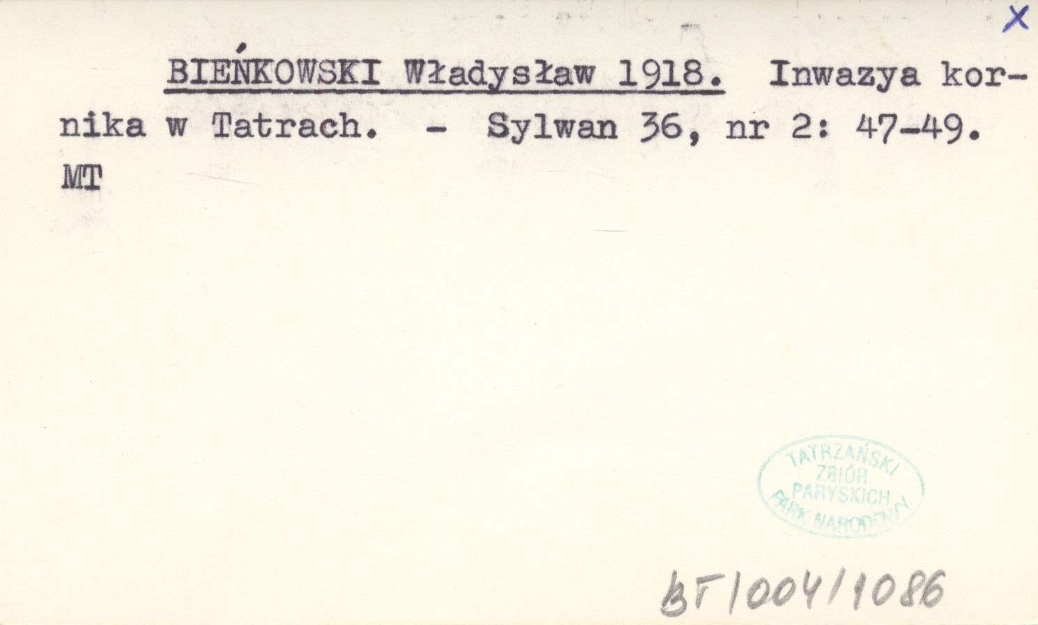 BIEŃKOWSKI Władysław 1918 Inwazya kornika w Tatrach.