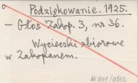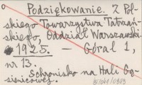 Podziękowanie. Z Polskiego Towarzystwa Tatrzańskiego, Oddział Warszawski. 1925