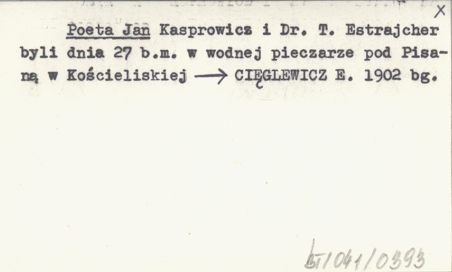 Poeta Jan Kasprowicz i Dr. T. Estrajcher byli dnia 27 b.m. w wodnej pieczarze pod Pisaną w Kościeliskiej.