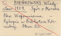 BIEŃKOWSKI Władysław 1987 Spór o Morskie Oko; Wspomnienia.