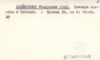 BIEŃKOWSKI Władysław 1918 Inwazya kornika w Tatrach.