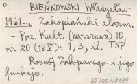 BIEŃKOWSKI Władysław 1961... Zakopiański alarm.