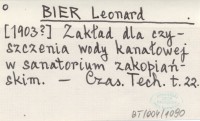BIER Leonard [1903?] Zakład dla czyszczenia wody kanałowej w sanatorium zakopiańskim.