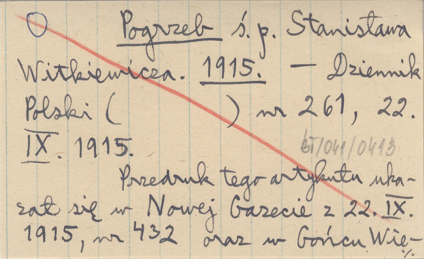 Dziennik Polski, Nr 261 (22 IX 1915). Przedruk tego artykułu ukazał się w Nowej Gazecie z 22 IX 1915, nr 432 oraz w Gońcu Wieczornym nr 477 (22 IX 1915).