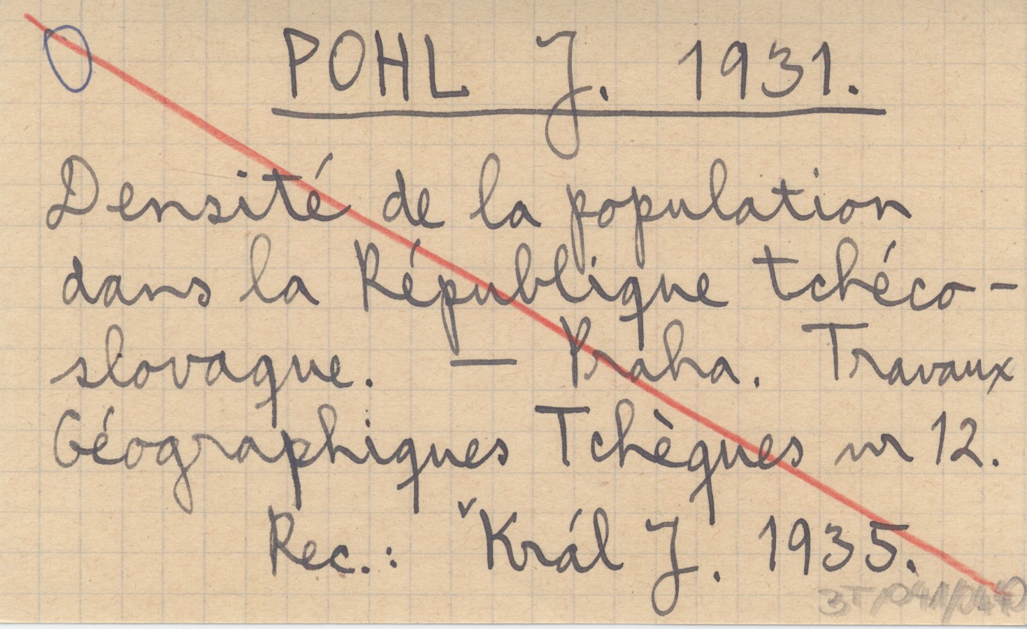 POHL J. 1931 Densité de la population dans la République tchécoslovaque.