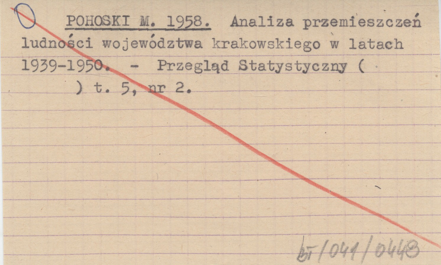POHOSKI M. 1958 Analiza przemieszczeń ludności województwa krakowskiego w latach 1939-1950.