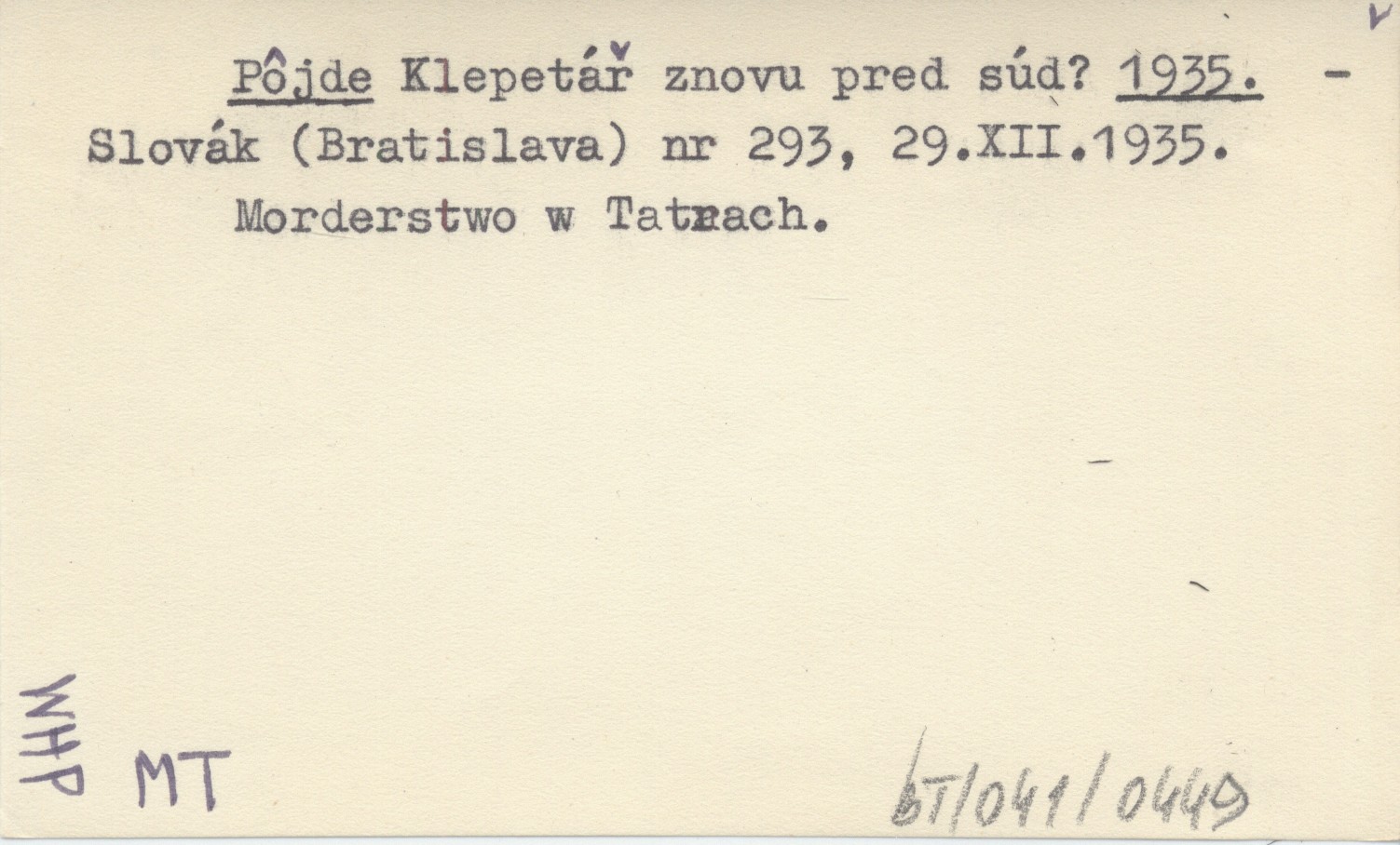 Slovák (Bratislava) , Nr 293 (29 XII 1935). Morderstwo w Tatrach.