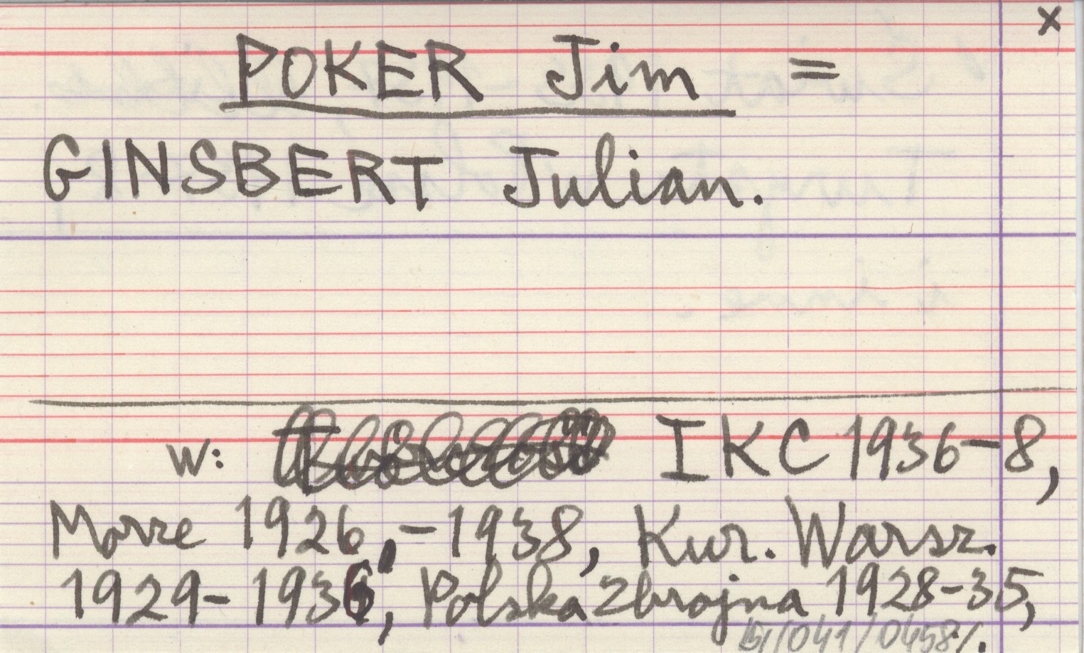 POKER Jim GINSBERT Julian W: Ilustrowany Kuryer Codzienny 1936-8, Morze 1926-1938, Kurier Warszawski 1929-1936, Polska Zbrojna 1928-35, Świat 1933-1937, Turysta w Polsce 1937-8, i inne.