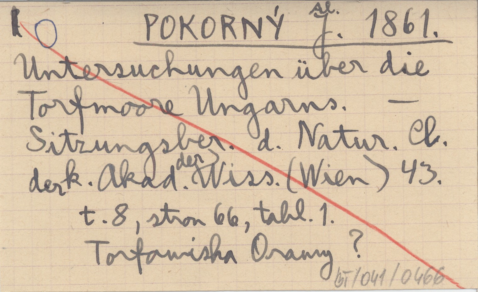 POKORNÝ J. 1861 Untersuchungen über die Torfmoore Ungarns.