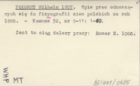 POKORNY Wilhelm 1907 Spis prac odnoszących się do fizyografii ziem polskich za rok 1906.