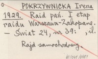 POKRZYWNICKA Irena 1929 Raid pań. I etap raidu Warszawa - Zakopane.