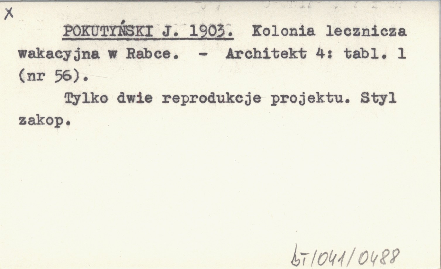 Architekt, 4: 1 k. (nr 56). Tylko dwie reprodukcje projektu. Styl zakopiański.