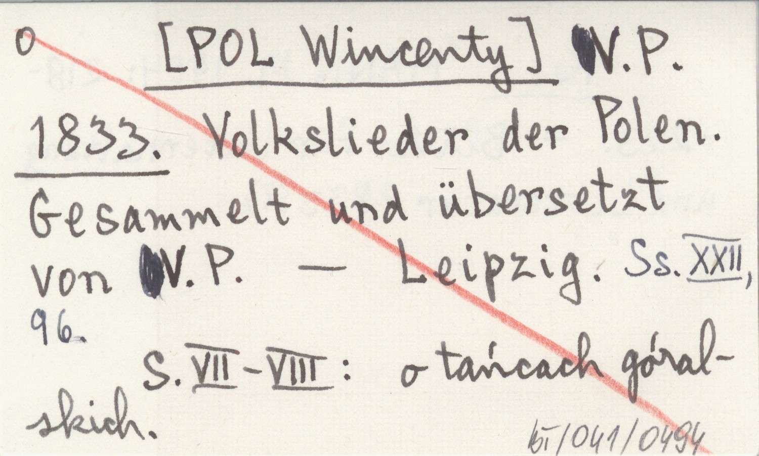 V. P. [POL Wincenty] 1833 Volkslieder der Polen. Gesammelt und übersetzt von V. P.