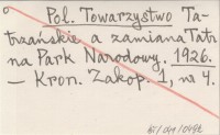 Pol. Towarzystwo Tatrzańskie a zamiana Tatr na Park Narodowy. 1926`