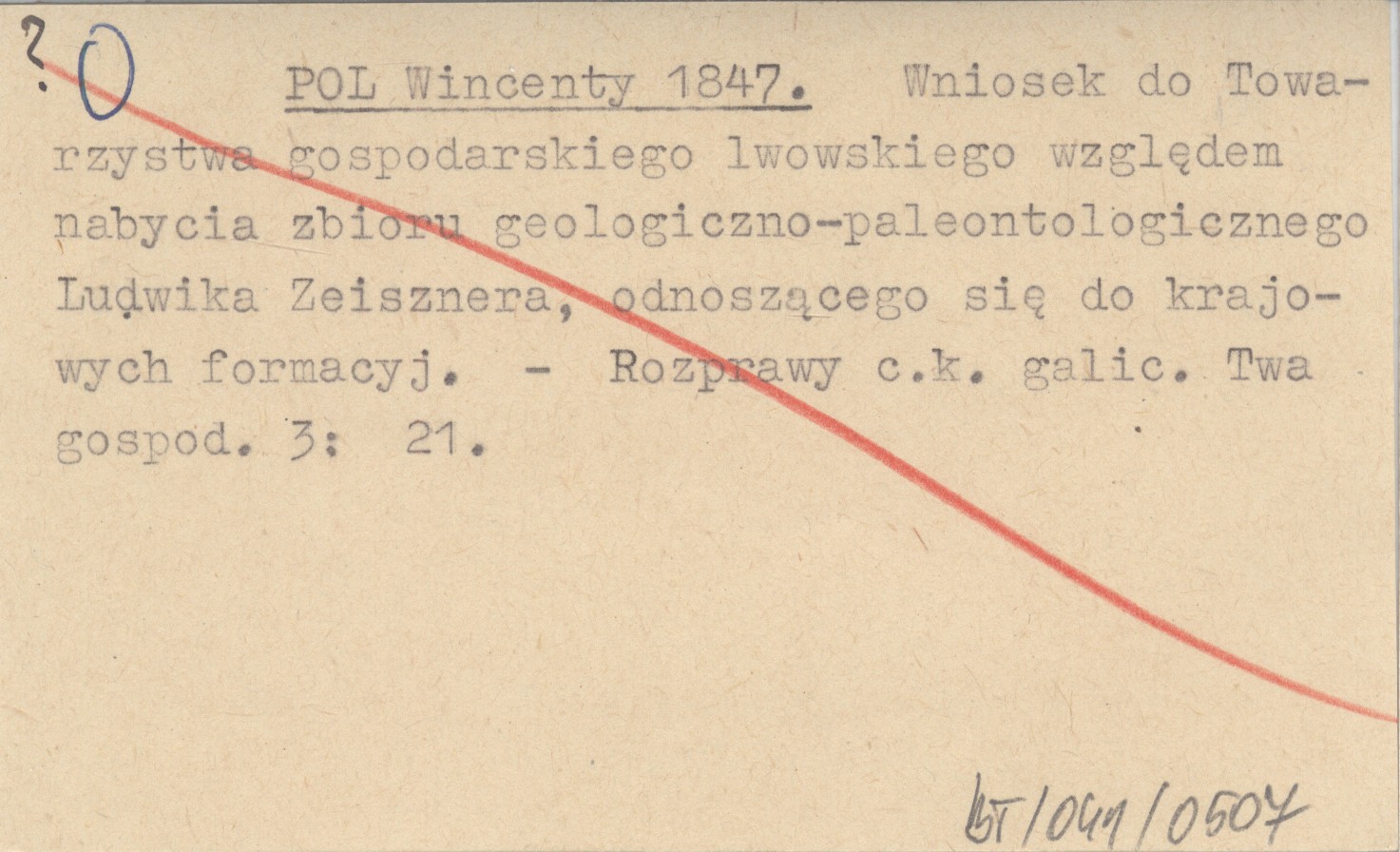 POL Wincenty 1847 Wniosek do Towarzystwa gospodarskiego lwowskiego względem nabycia zbioru geologiczno-paleontologicznego Ludwika Zeisznera, odnoszącego się do krajowych formacyj.