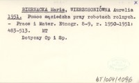 BIERNACKA Maria WIERZCHONIÓWNA, Aurelia. ; 1951 Pomoc sąsiedzka przy robotach rolnych.