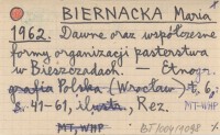 BIERNACKA Maria 1962 Dawne oraz współczesne formy organizacji pasterstwa w Bieszczadach.