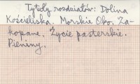 Przyjaciel Dzieci (Lwów) , 2, nr 18: 282-284 ; nr 19: 289-293 ; nr 20: 305-310 ; nr 21: 321-324 ; nr 22: 340-346, il. Tytuły rozdziałów: Dolina Kościeliska. Morskie Oko. Zakopane. Życie pasterskie. Pieniny.