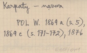 Tygodnik Illustrowany (Warszawa) , Ser. 2, t. 3, nr 53: 5-7 ; nr 54: 16-18. W znacznej części dotyczy Tatr i Podhala (m. in. o pasterstwie). To samo w: POL W. 1869 c, 1876