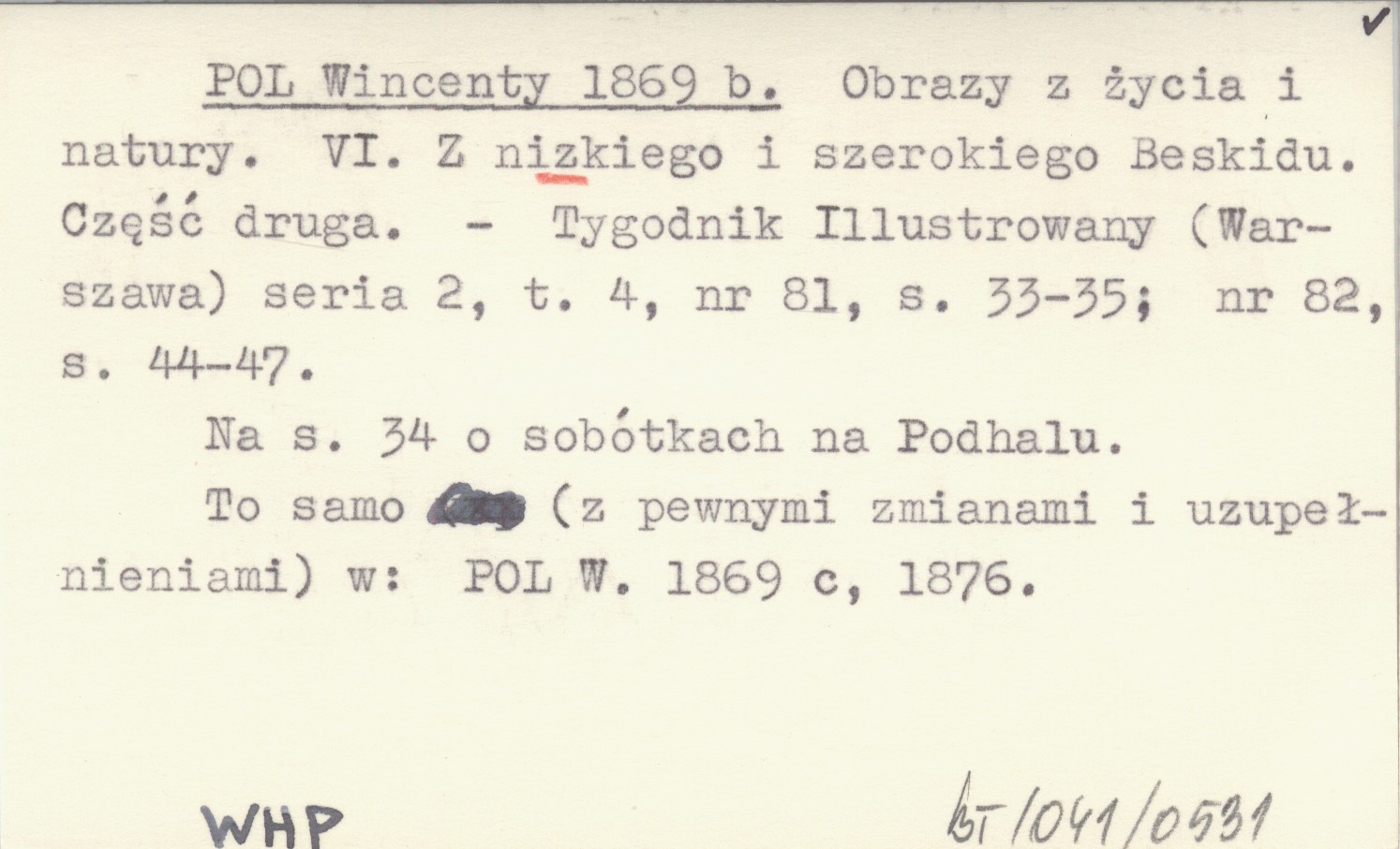 Tygodnik Illustrowany (Warszawa) , Ser. 2, t. 4, nr 81: 33-35 ; nr 82: 44-47. Na s. 34 o sobótkach na Podhalu. To samo (z pewnymi zmianami i uzupełnieniami) w: POL W. 1869 c, 1876
