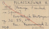 POLACZKÓWNA H. 1918 [Recenzja. O zamkach na Spiszu.]