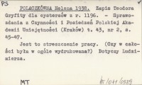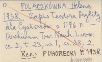 POLACZKÓWNA Helena 1938 Zapis Teodora Gryfity dla cystersów z r. 1196.