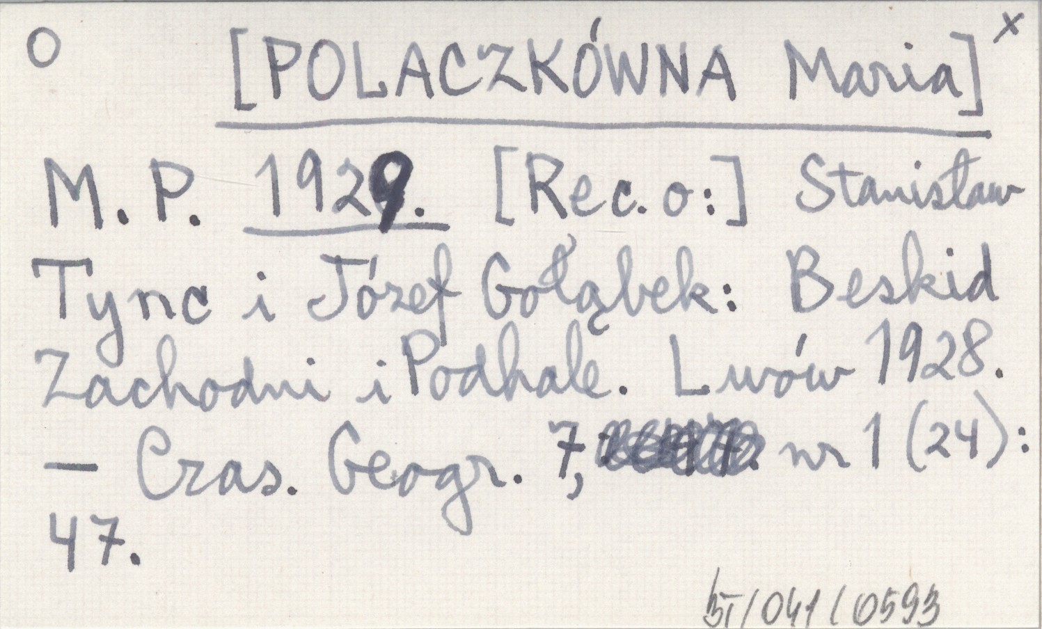 M. P. [POLACZKÓWNA Maria] 1929 [Rec. o:] Stanisław Tync i Józef Gołąbek: Beskid Zachodni i Podhale. Lwów 1928.